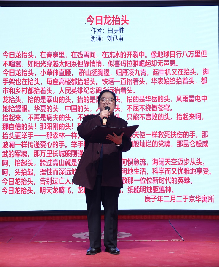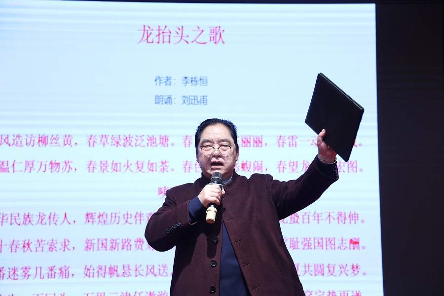 ▲刘迅甫倾情朗诵白庚胜主席《今日龙抬头》