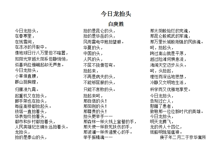 白庚胜主席还精心为“乙巳二月二诗家雅集”创作《今日龙抬头》诗歌一首,为本次活动锦上添花。