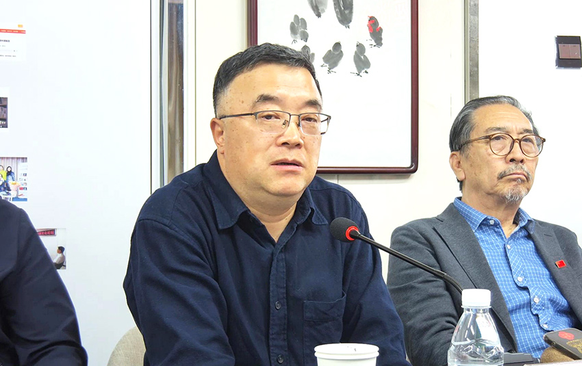 中国职工微电影短视频协会副会长周玉忠在发言时表示,剧本作为一剧之本,是影视艺术的灵魂。当前我们国家文化产业蓬勃发展,但优质的剧本存在很大的缺口。期待剧本创研中心能与中国职工微电影短视频协会深度合作,资源共享,联合举办主题剧本征文项目,组织作家、编剧开展深入工厂车间的创作采风活动,共同孵化微短剧项目,我想必将实现1+1大于2的效果。一方面,剧本创研中心能为我们协会输送优质的文本内容,提升作品的艺术高度;另一方面,职工群众的真实故事也将为创作者提供灵感富矿,让作品更接地气,更有温度。