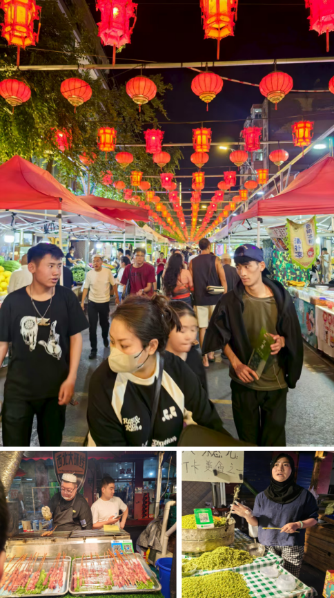 穿过喧闹的夜市,便是东关清真大寺。月光轻抚寺顶的新月,青砖拱券在夜色中显得格外庄严。我们与几位戴白帽的回族老人闲聊。一位马姓老人笑着说:“西宁好啊,夏天连扇子都用不上,各族人在一块儿,比一家人还亲。”他眼角的皱纹里漾着暖意,“你看那夜市,汉民的甜醅子、回民的酿皮、藏民的酸奶,摆在一起才最香!”另一位韩姓老人接过话:“西宁是多民族聚居的地方,文化包容、物产丰富、生活安宁。你们既然来了,就该多走走多看看,一定会喜欢上这儿的。”