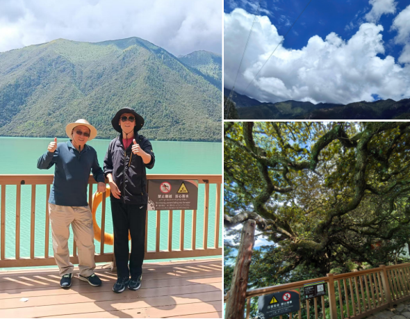 耐寒暑、抗干旱的青冈树铺陈林芝千山万岭的底色,湖心岛上那株一千三百岁的青冈更成奇景:枝干蜷曲如十二生肖,叶上竟生梵文;风过叶摇,似有经文簌簌而落。众人抚树良久,觉其皮若经卷,纹似真言。游客依次与千年老者合影,愿得如意吉祥。