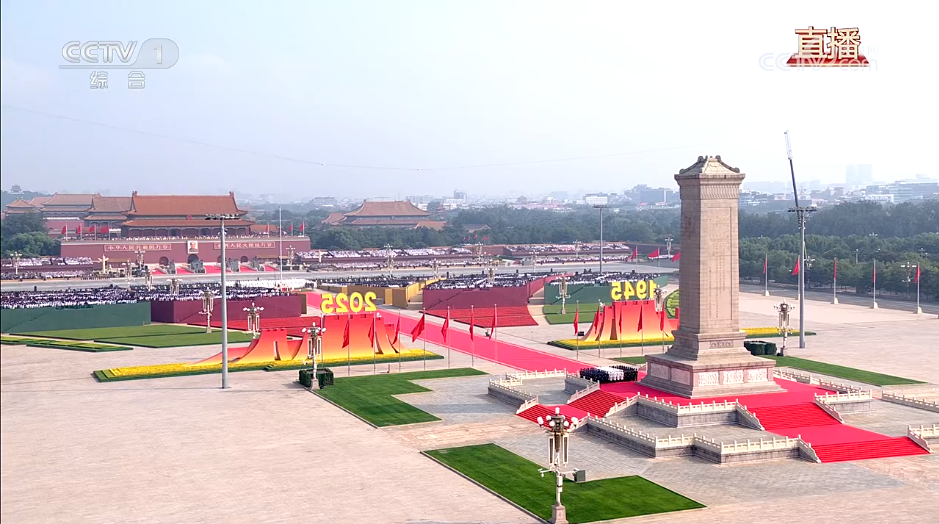 2025年9月3日上午,纪念中国人民抗日战争暨世界反法西斯战争胜利80周年大会在北京天安门广场隆重举行,中共中央总书记、国家主席、中央军委主席习近平发表重要讲话并检阅受阅部队。