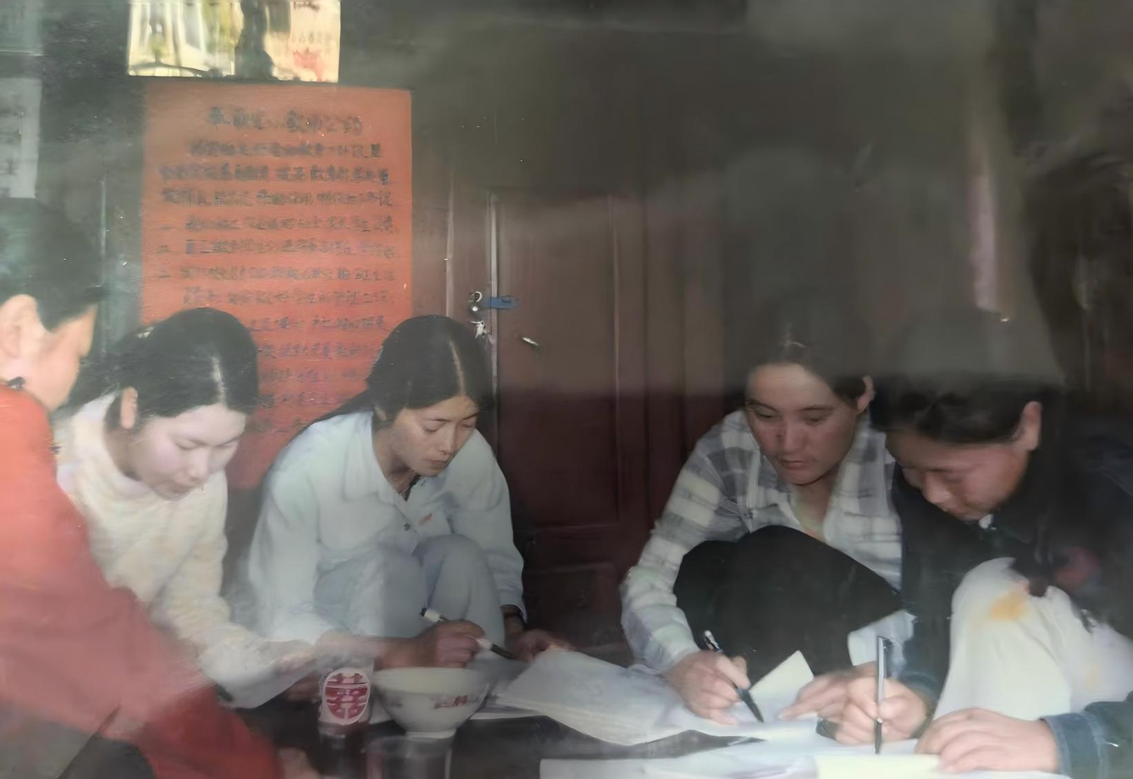 而在这一张春蕾女童班合照的下面,还有另外一张照片。那张照片里,我和奉联完小的老师们,围着一盏煤油灯研究孩子们的教学工作,光影将我们的影子拉得很大,投在斑驳的土墙上。我们那时研究的“教学保障”,无非是怎样才能让粉笔用得再省一点,怎样才能让孩子们每人都有本完整的作业本。那些争论、那些叹息、那些因一个微小的解决法子而绽开的笑容,此刻都从照片里静静地弥漫出来,带着当年煤油与旧书本混合的特有气味。