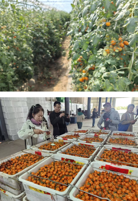 离开头道桥联丰庭院经济融合发展示范园区,我们来到二道桥镇菏供设施农业园区。园区以“百企连百村建百园带万户”为契机打造智慧农业,是一个引黄滴灌示范、集中连片种植等功能为一体的设施农业产业园。在园区里就可以看到近600座冷棚、60多座连体棚。大棚里种满了玉茹蜜瓜、网纹蜜瓜和红色的、黄色的、绿色的圣女果等高产值农产品。蜜瓜圣女果甘甜爽口,吃一口甜掉牙,产品远销南方各大城市,供不应求,这是一个甜蜜的事业。