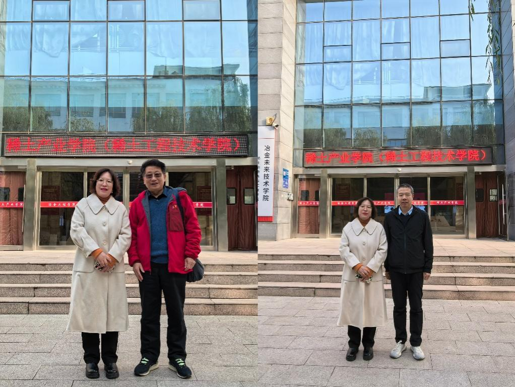 彭军院长和常宏涛教授在会议室热情地接待了我们。彭院长气质沉稳,言谈间透着从产业一线带来的务实与远见;常教授则热情洋溢,眸子里闪烁着对稀土事业近乎虔诚的光。当她谈及自己的父亲——一位东北大学的稀土专业老教授、包头稀土研究院老专家,为稀土事业奋斗了一生,赢得桃李满天下,以及自己女承父业的经历时,那种跨越两代人的一往情深,让冰冷的稀土元素瞬间被赋予了温热的传承血脉。说起学院和她的教学成就,她如数家珍,自豪之情溢于言表。当说起自己荣获的诸多成就时,她非常谦虚地说,自己是沾了稀土的光。
