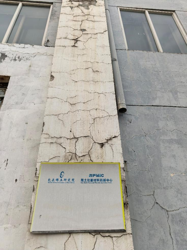 当年包钢三厂斑驳的墙上《包关稀土研究院》的名牌依然坚守