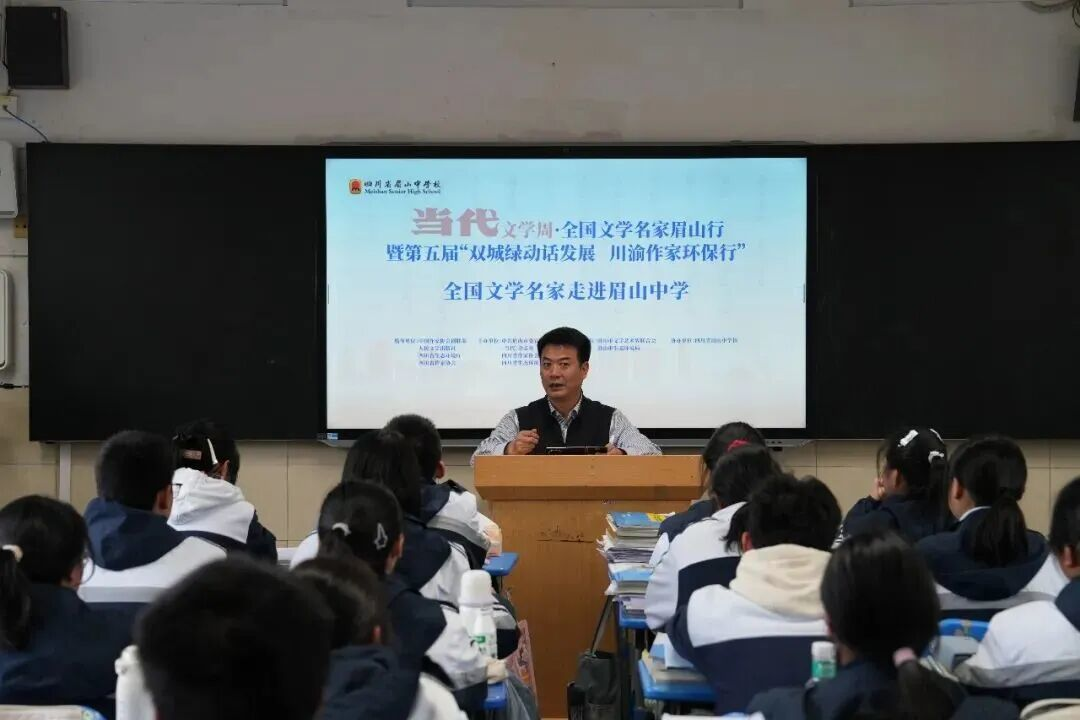 范稳、侯志明、鲁敏、石一枫、杜阳林、凌仕江、白月等作家来到了眉山中学。范稳讲述自己四十年来如何以“咬定青山不放松”的毅力,在回忆与发现中构建起独特的文学世界。鲁敏分享了她从邮局职员到作家的蜕变之路,勉励同学们勇敢去做自己热爱的事。