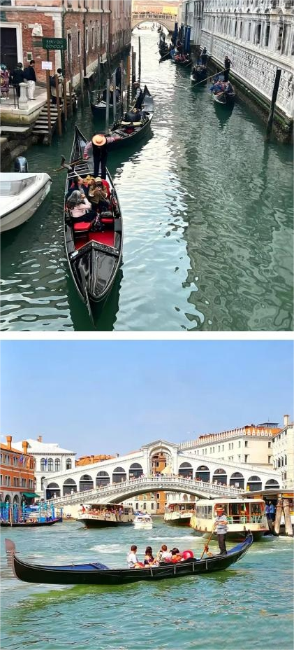 我一次次“迷路”,却一次次在转角遇见惊喜。小运河上摇曳的贡多拉,撑船人戴着草帽、轻哼小调;水波轻轻拍打着船身,仿佛在为他们伴奏。