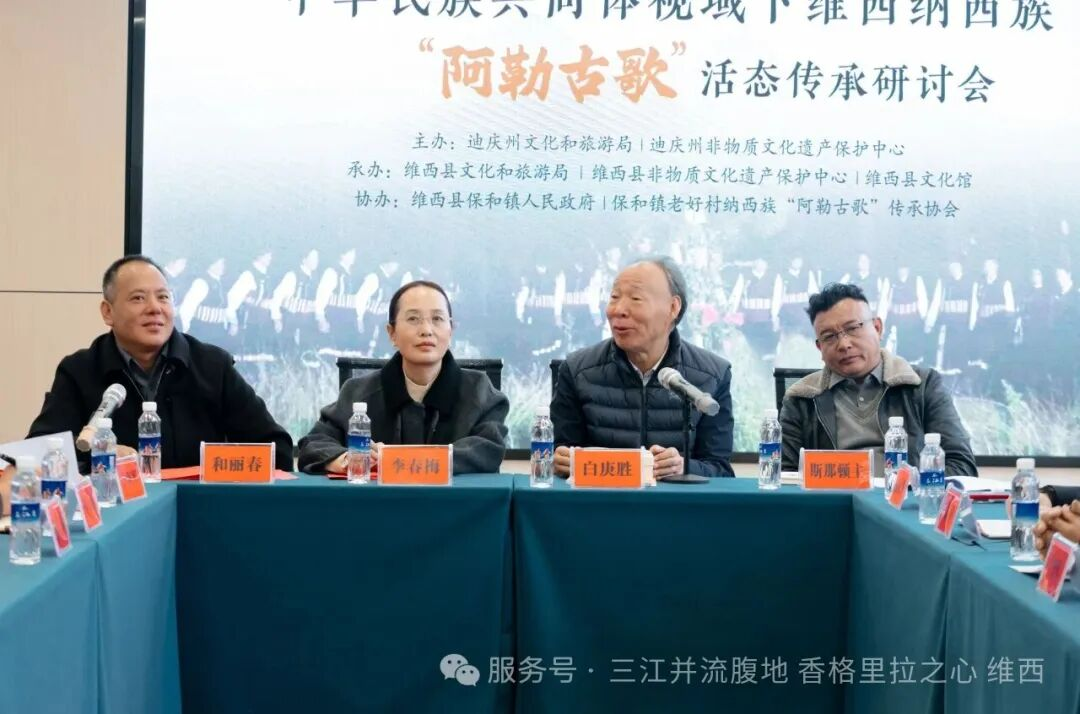 2025年11月22日至24日,由迪庆藏族自治州文化和旅游局、迪庆藏族自治州非物质文化遗产保护中心主办,维西傈僳族自治县文化和旅游局、维西县非物质文化遗产保护中心、维西县文化馆承办,保和镇人民政府、保和镇老好村阿勒古歌传承协会协办的“中华民族共同体视域下维西纳西族‘阿勒古歌’活态传承研讨会”在云南省维西县顺利召开。