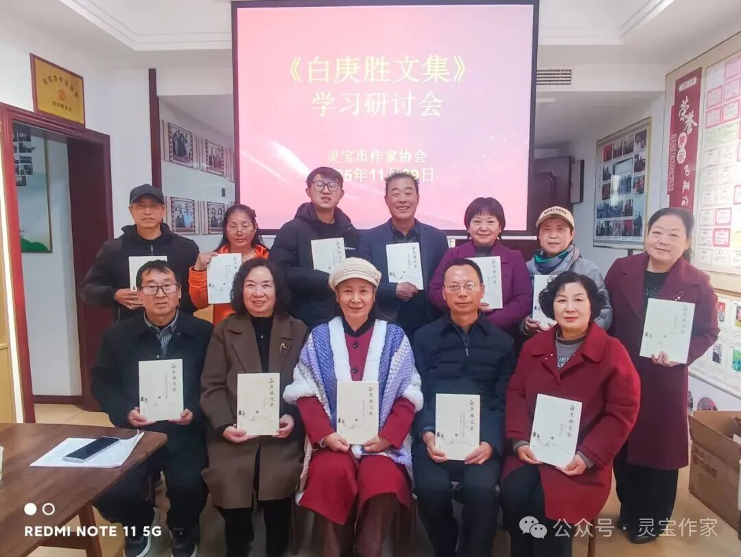 11月29日,灵宝市作家协会举行《白庚胜文集》学习研讨会,作家协会在家班子成员及骨干作家 10 余人齐聚黛馨文学馆,共话文学传承,共探创作之道。会议由市作协主席李亚民主持,市政协四级调研员刘春龙等出席。