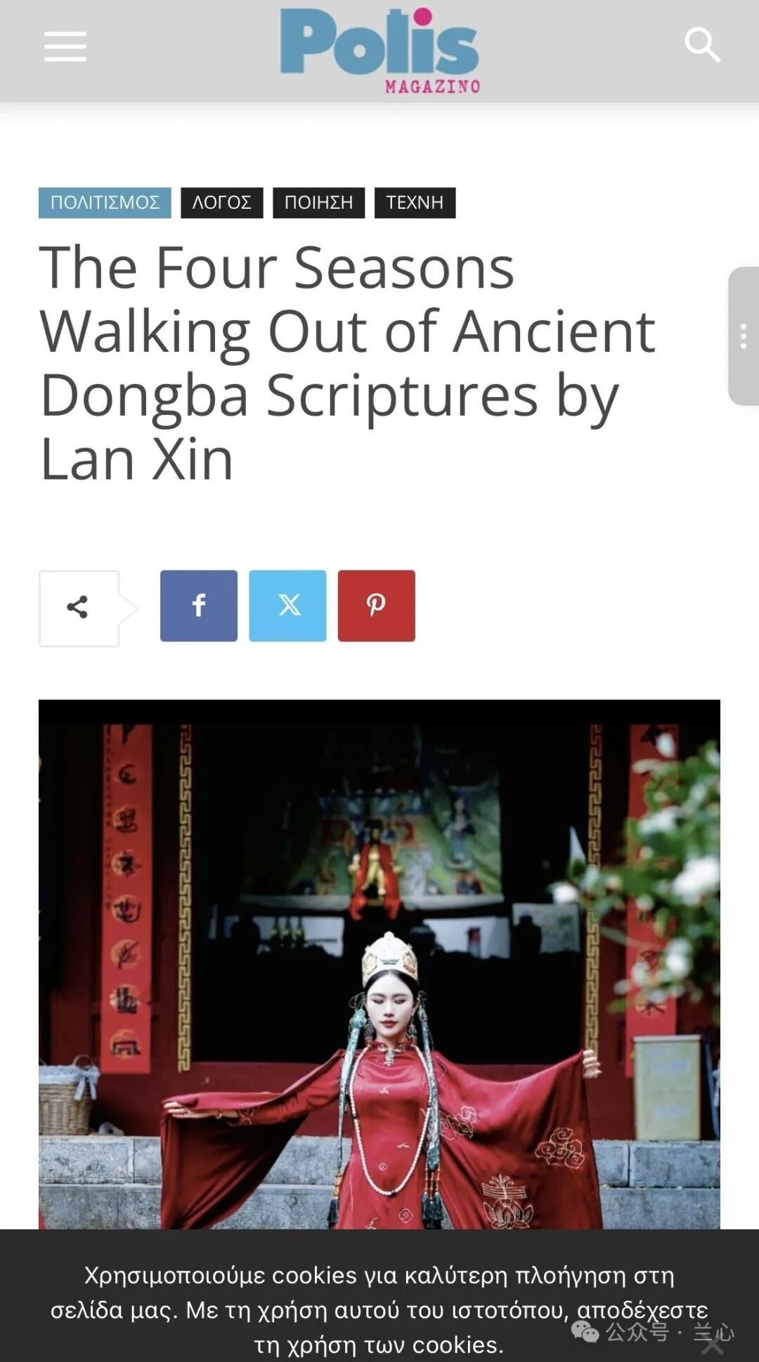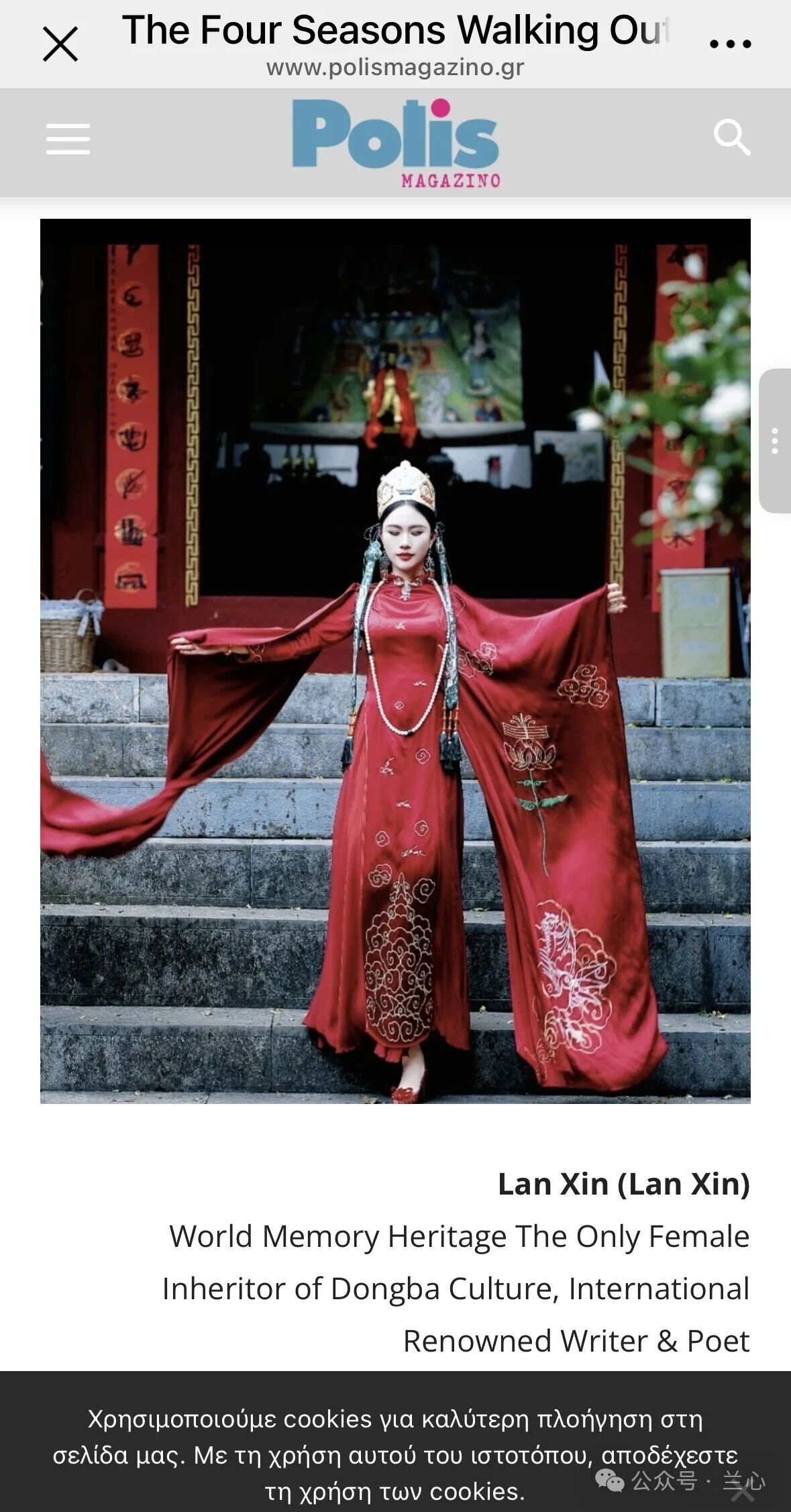 此次合作得到了希腊《Polis》期刊的重磅盛赞,国际版主编Eva Lianou Petropoulou在官宣中明确表示:“与卓越的兰心进行丰硕的合作,是‘以诗歌为纽带、以传统为根基’的文化交融实践。此次合作不仅筑牢了中希携手共赢的坚实根基,更让联合国教科文组织认证的世界记忆遗产——东巴文化,在欧洲舞台上绽放独特魅力。”