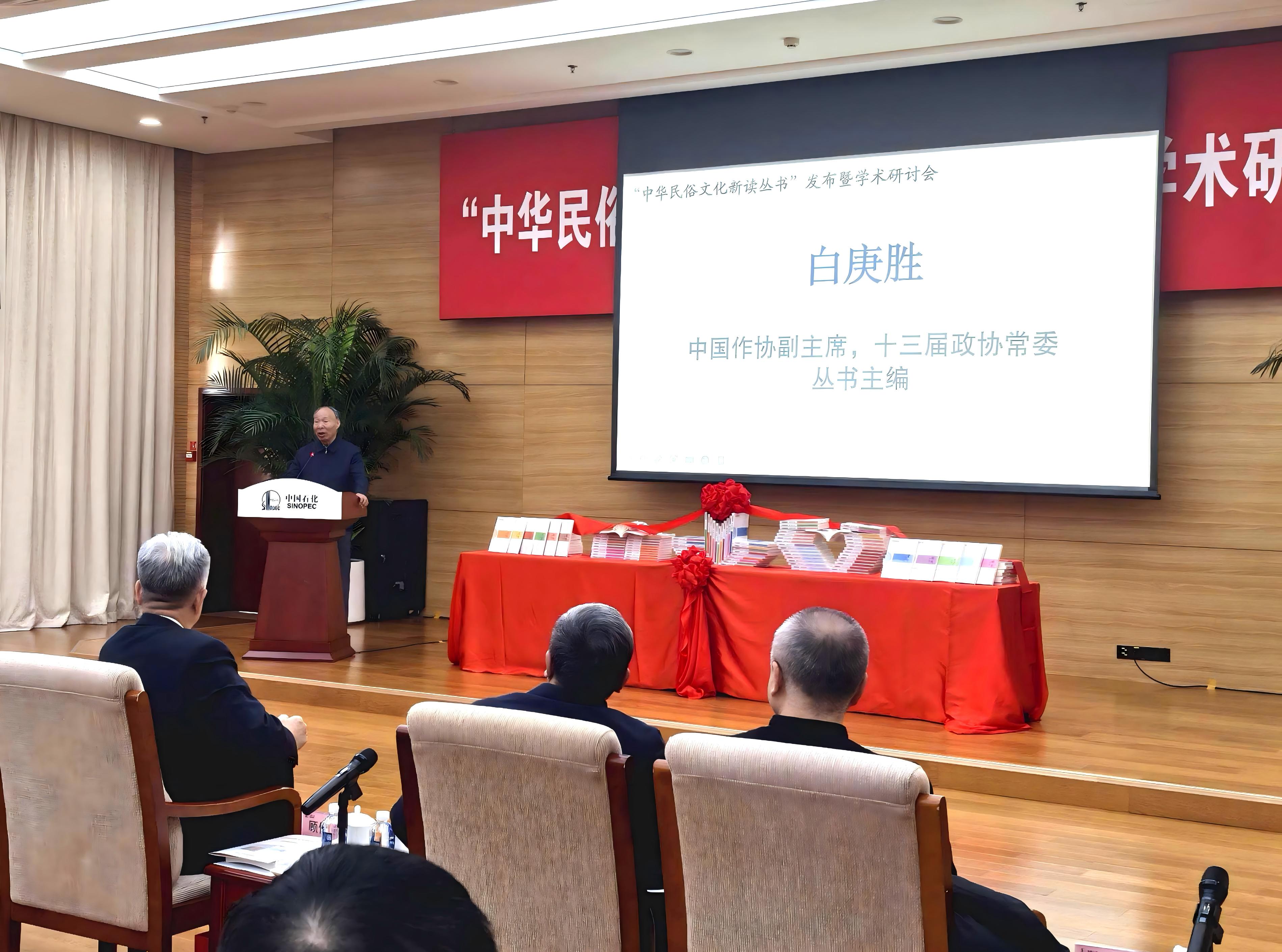 【本会讯】2026年1月24日上午,由中国石化出版社有限公司主办的“中华民俗文化新读丛书”发布暨学术研讨会在北京隆重举行。本次会议以“文化之根·民俗之魂”为主题,汇聚了来自全国政协、教育部、中国作协、中国出版协会等国家部委及文化机构的领导,以及北京大学、北京师范大学、中国传媒大学、中国社会科学院等高校和科研单位的数十位知名专家学者、出版界同仁与媒体代表,共同见证这一新时代中华优秀传统文化传承与创新的重要成果。