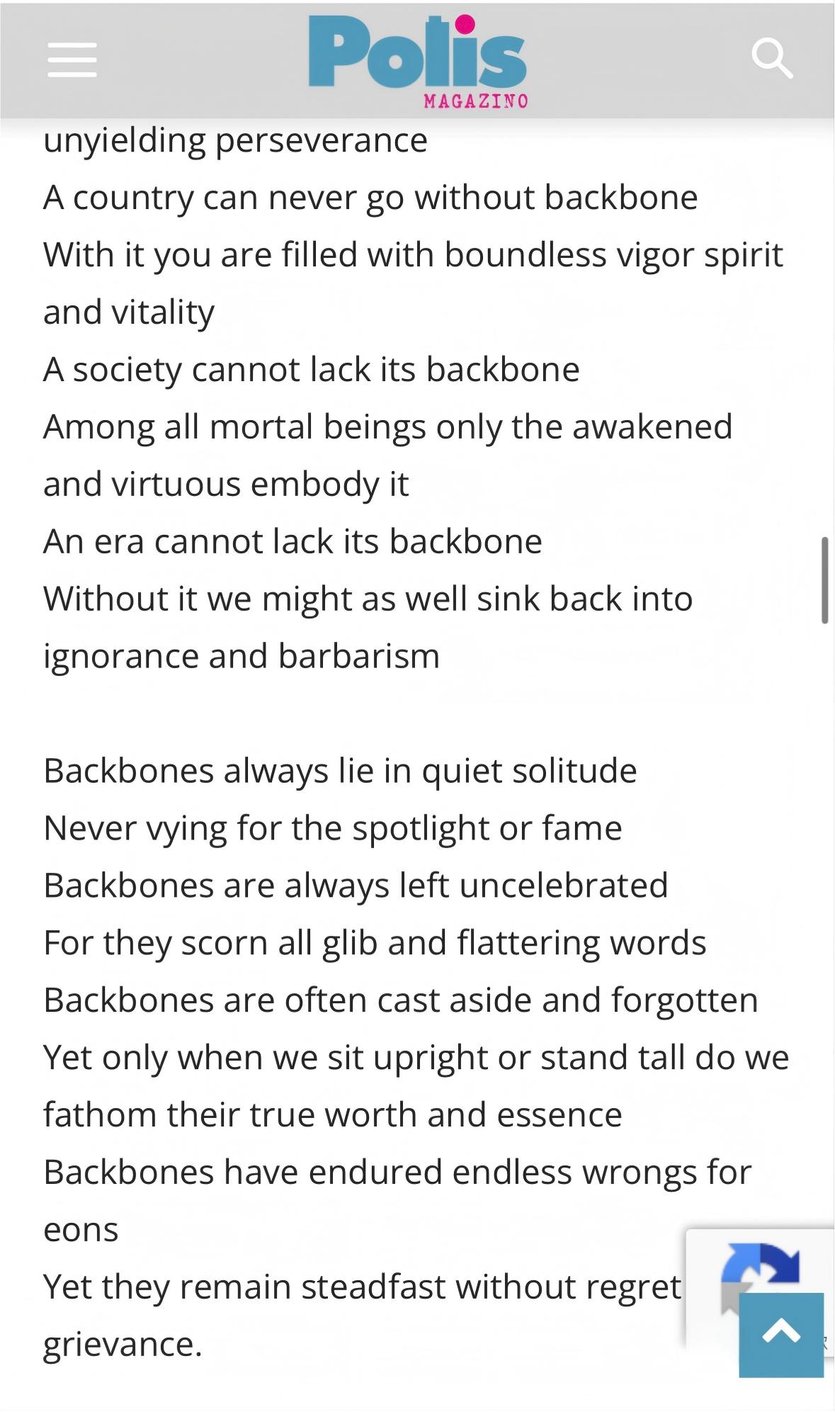 创刊于1977年的《Polis》杂志,是全球古典学领域极具影响力的学术期刊,以“连接古典文明与当代文化”为核心定位。此次《脊梁》的发表,是该刊本月内第二次登载白庚胜的作品,而此前《致爱妻》已登陆阿拉伯《灯塔》杂志(Almanar),实现了在欧亚不同区域的文化落地——从《致爱妻》的“私人情感”到《脊梁》的“公共精神”,白庚胜的创作恰好契合了国际期刊对“人类共通精神”的关注。