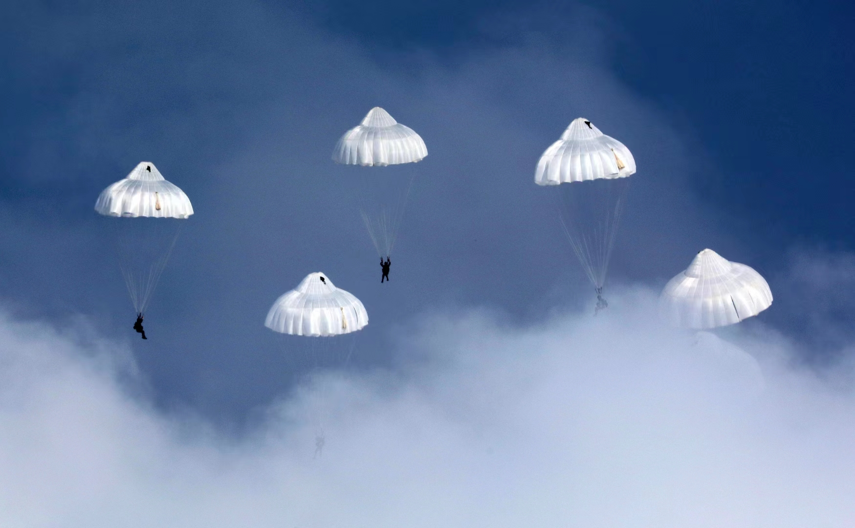 于是,在2023年夏季赴内地伞降训练的现场,笔者见到了骆传峰忙碌的身影。该轮到他和战友们跳伞了!随着飞机后舱门的打开,骆传峰一跃而下,一朵洁白的伞花随即在空中绽放。战友们跟着跳下,伞花一朵又一朵,像极了开满天空的雪莲。