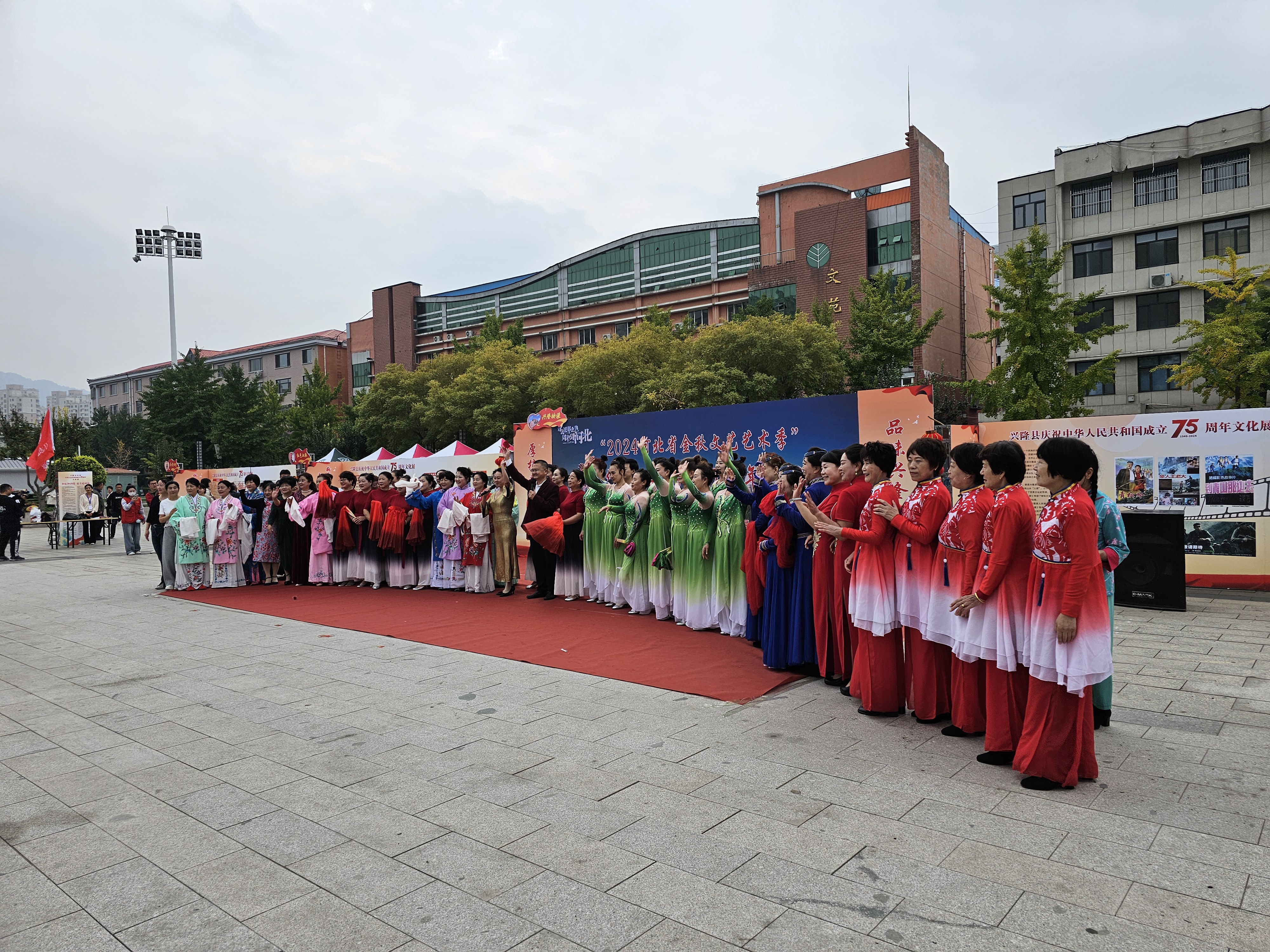 在广场上,我见到了县文化馆馆长钱飞龙,他是活动的组织者兼“场务总监”,比比划划地忙的不亦乐乎。听他介绍,这些天各种文化演艺展示活动非常多,县城的主场安排较大的主题活动,其余的时间场次还要安排给社会各专业协会、老年大学以及群众自发组织编排的项目,这还不包括乡镇及较大居民区的节庆文娱演出。他说,今年正值祖国华诞75周年,各种庆祝演出及展示特别多,但是各项目安排指导得力,活动井然有序。